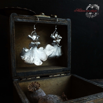 * Neopakovatelný šperk jsem vyrobila a ručně zpracovala v mé čarovné dílně unikátní metodou Galvanoplastiky (Electroformingu) a Galvanostegie (Electroplating). Skutečná přírodnina byla pokovená základní vrstvou mědi, pak postříbřena vrstvičkou ryzího stříbra a následně chráněná proti oxidaci a otěrům rhodiem.
