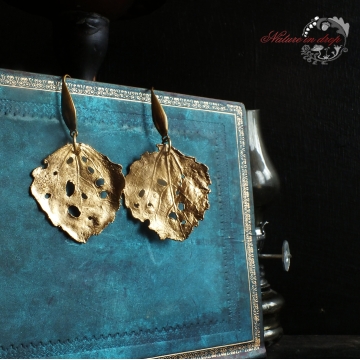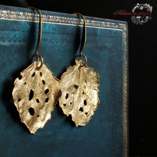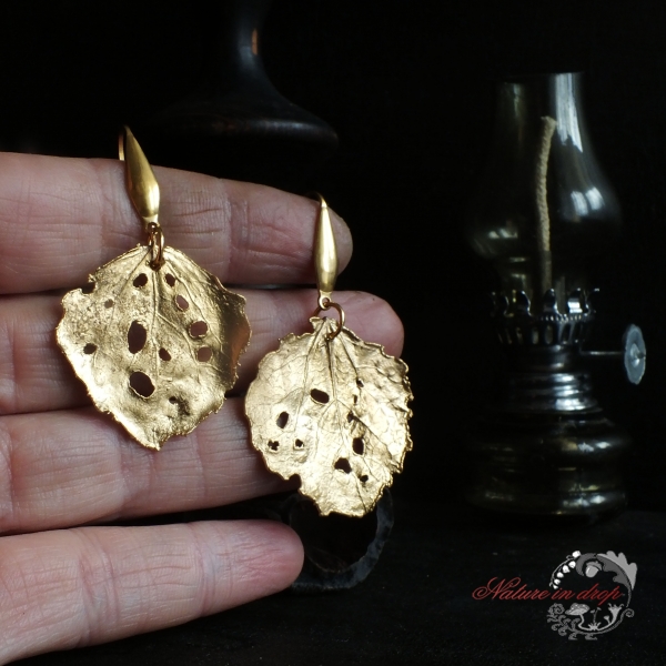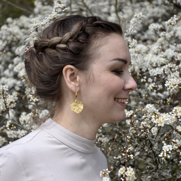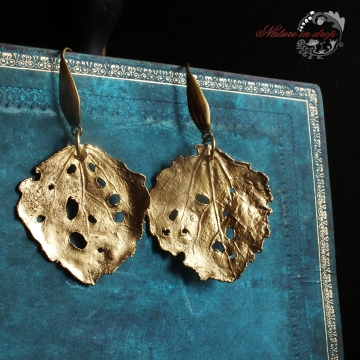 Materiál: listy topolu, měď, postříbřené, pozlacené, háčky zlacená chirurgická ocel