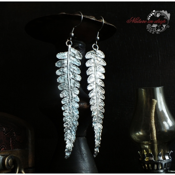 Materiál: kapradí, měď, postříbřené, rhodiované, háčky chirurgická ocel