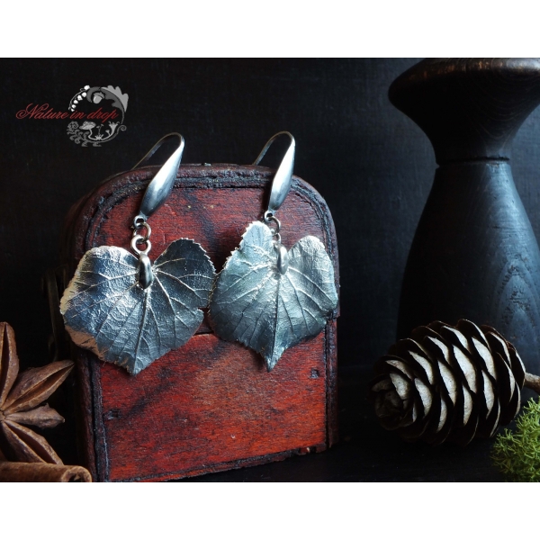 Náušnice pro Zimní královnu - ledově stříbrné, zářivé a něžné. Skutečné lipové listy oděné tenkou řízou stříbra se staly kouzelným šperkem pro jedinečnou ženu, která má hluboké a vnímavé srdce a ráda se rozmazluje.