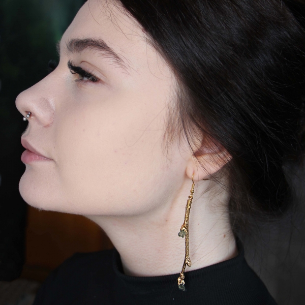 Něžné náušnice z pozlacených větviček lípy se rychle stanou nedílnou součástí vašeho šatníku. Lípa ve spojení s vltavínem podpoří srdce, laskavost a vnímavost vůči přírodě a všemu živému. Pomáhá rozpouštět energetické bloky a žít život tady a teď.