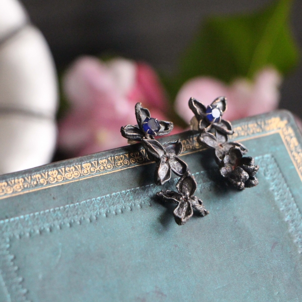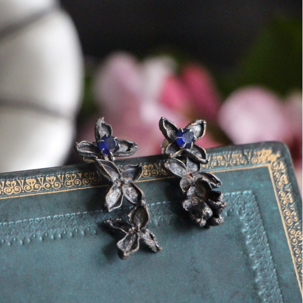 Materiál: šeřík, měď, rutheniované, safír a stříbro 925 nebo ocelové pecky