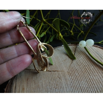 Náušnice ze vznešeného jmelí v luxusním zlatém hávu vám dodají na vznešenosti a záhadnosti. Každý detail jsem jemně a pečlivě zpracovala a skutečné jmelí vrstvu po vrstvě oděla do mědi, stříbra a zlata.