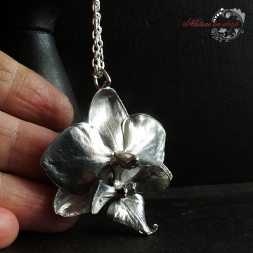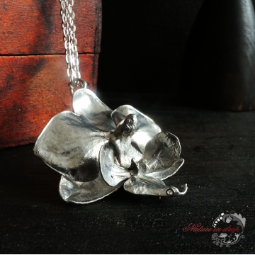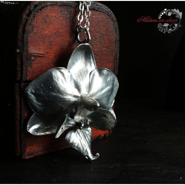Materiál: květ orchideje, měď, postříbřené, rhodiované, řetízek chirurgická ocel