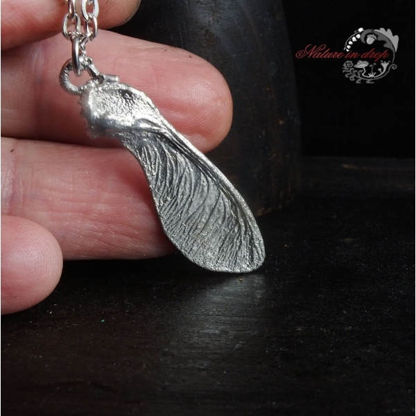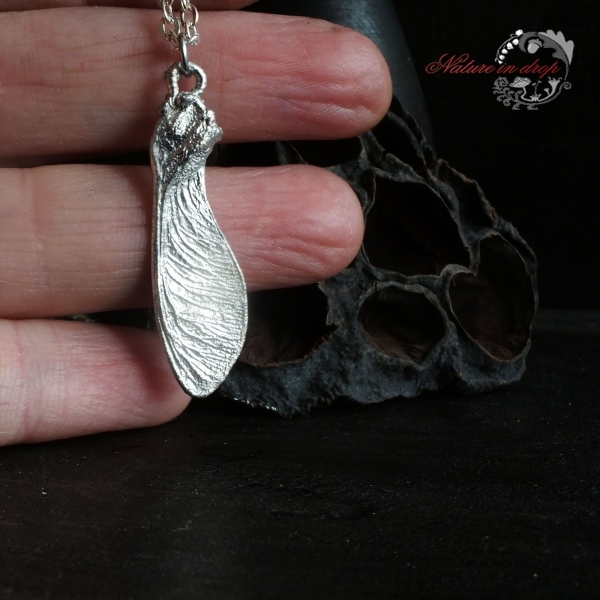 Něžný přívěsek z javorového křidélka připomíná malý stříbrný klíček. Nejvíc bude slušet ženě, která preferuje jednoduchost, má cit pro detail a dokáže ocenit jemnou krásu maličkostí.