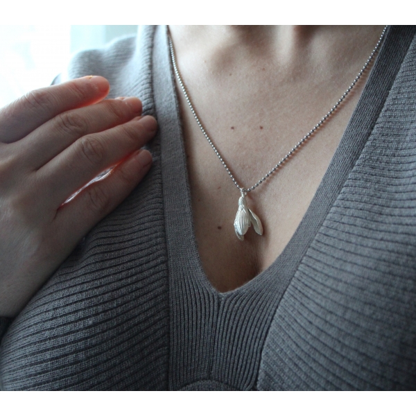 Materiál: sněženka, měď, postříbřené, patina, antioxidační prostředek, řetízek chirurgická ocel