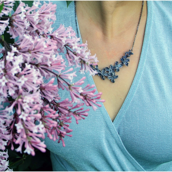 Materiál: šeřík, postříbřené, antioxidační prostředek, řetízek z chirurgické oceli