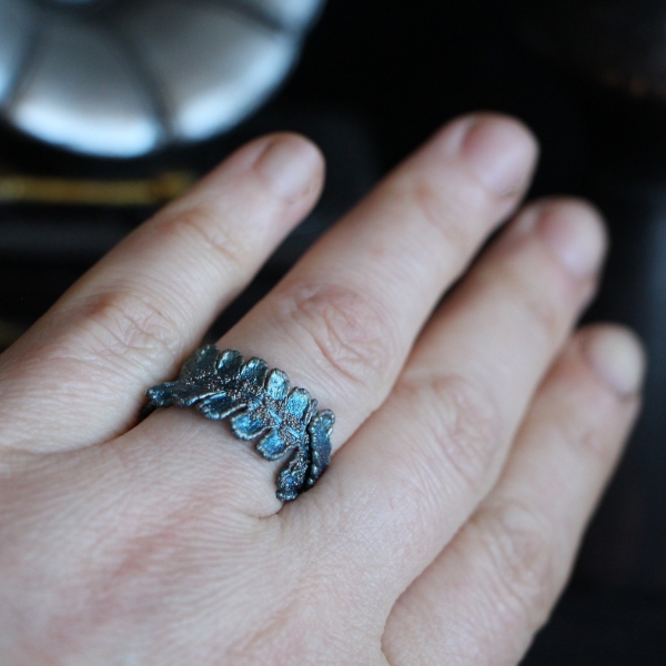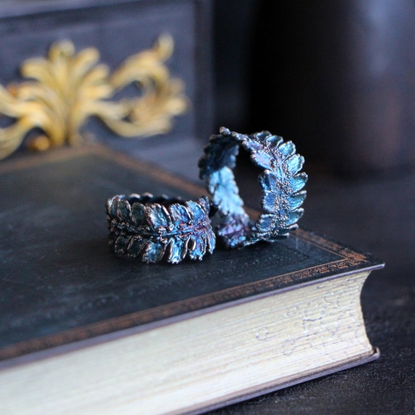 Podle pověstí zlaté kapradí odemyká poklady a dává přístup k tajemstvím lesa. A právě těm, kteří milují přírodu a rádi poznávají její tajemství, jsou určené tyto magické prstýnky z kapradí. Ve spojení se stříbrem a modrou a fialovou patinou podpoří vnímavost a hluboké souznění, ať již mezi partnery, nebo ve vztahu k přírodě a k životu, ze kterého se všechno rodí.