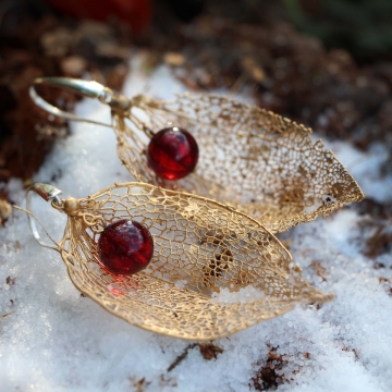 * Neopakovatelný šperk jsem vyrobila a ručně zpracovala v mé čarovné dílně unikátní metodou Galvanoplastiky (Electroformingu) a Galvanostegie (Electroplating). Skutečnou přírodninu jsem pokovila základní vrstvou mědi, pak postříbřila vrstvičkou ryzího stříbra a následně pozlatila 23 karátovým zlatem.