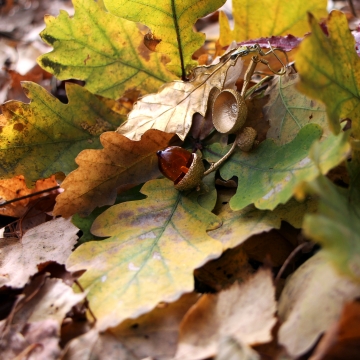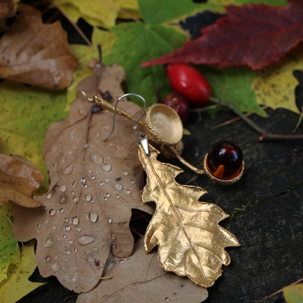Materiál: dubový list, měď, postříbřené, pozlacené, háčky jsou z pozlacené a postříbřené oceli