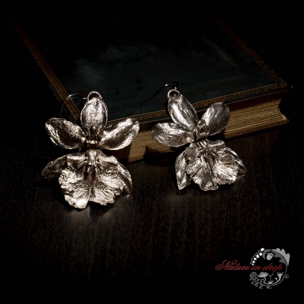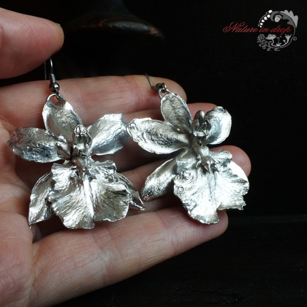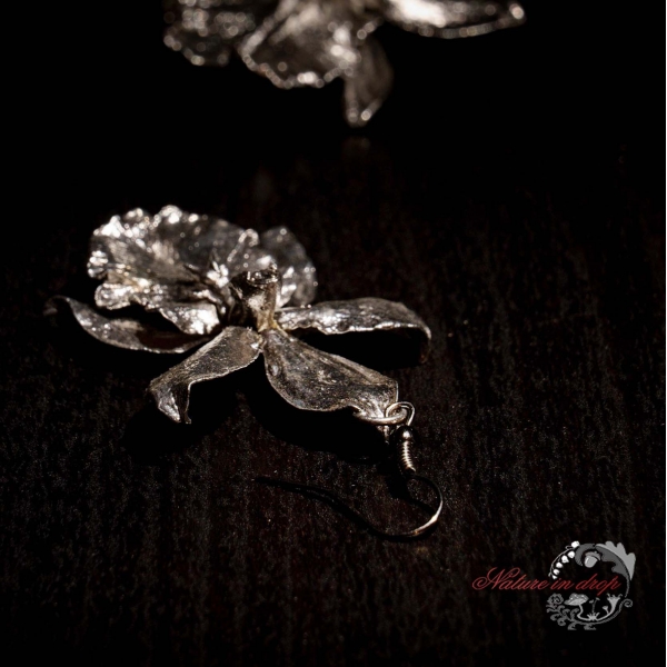 Material: orchid flower, copper, surgical steel, silver-plate, rhodium-plate