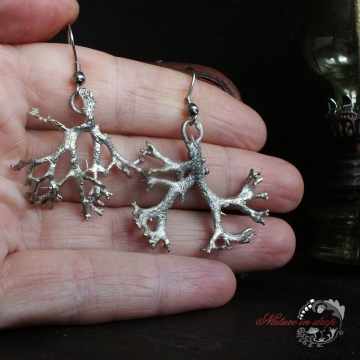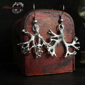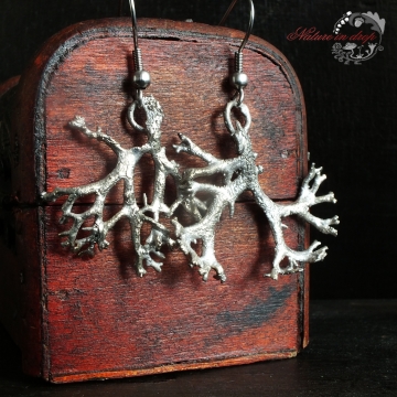 Material: lichen, copper, silver-plate, rhodium-plate, surgical steel hooks