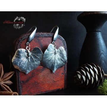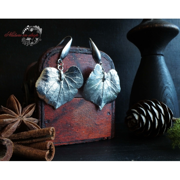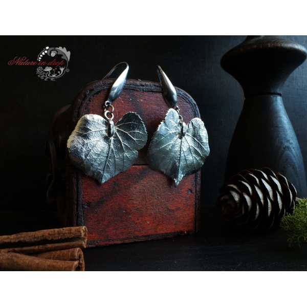 Earrings for the Winter Queen - ice silver, bright and delicate.Real linden leaves clad in a thin silver robe have become a magical jewel for a unique woman who has a deep and receptive heart and loves to be pampered. Linden in combination with silver strongly supports women's energy, receptivity and intuition, brings harmony in relationships and dissolves worries.