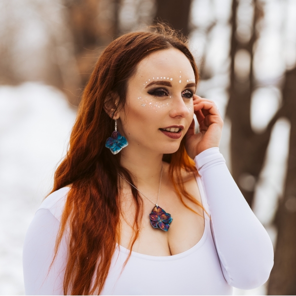 Material: hydrangea flower, copper, silver-plated, patina, antioxidation agent, silver 925 hooks