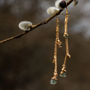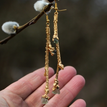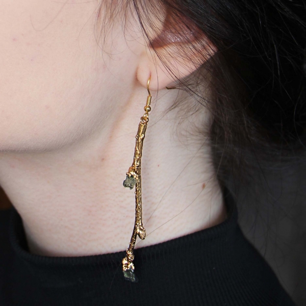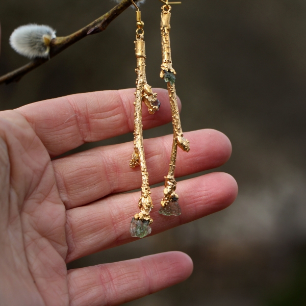 Gentle earrings made of gilded linden twigs will quickly become an integral part of your wardrobe.Linden in combination with moldavite supports the heart, kindness and sensitivity to nature and all living things. It helps to dissolve energy blocks and live life here and now.