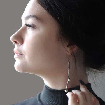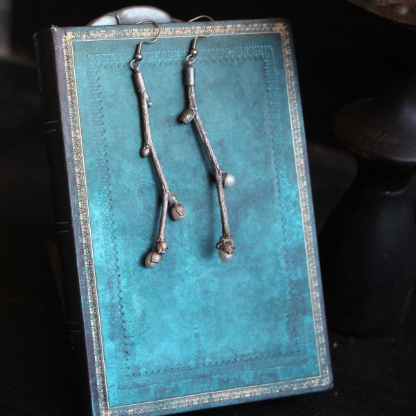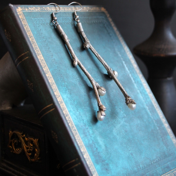 Material: willow twigs, copper, silver-plate, platinum-plate, river pearls, surgical steel hooks
