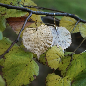 * Each vein and crack has remained immortalized in its original form for ages and will tirelessly underline your natural beauty. * I created and handmade this unrepeatable jewelry in my magical workshop by a unique method of Electroforming and Electroplating. I plated the real natural material with a base layer of copper, then silver-plated with a layer of pure silver and subsequently gilded with 23 carat gold.