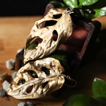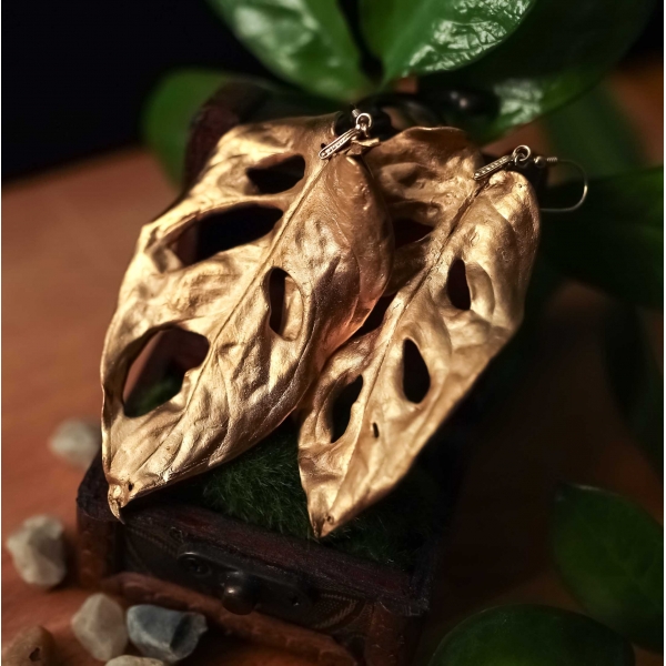 Material: monstera leaf, copper, tin, gilded, labradorite