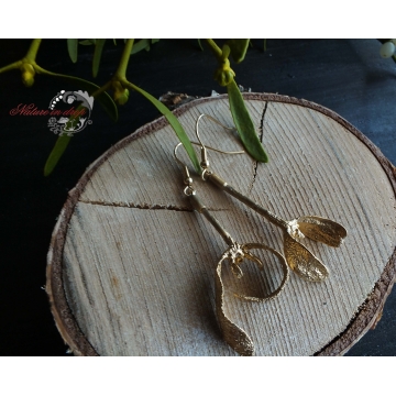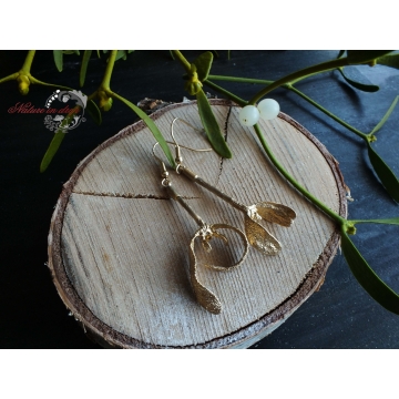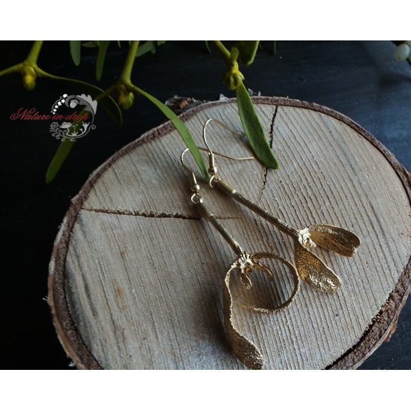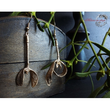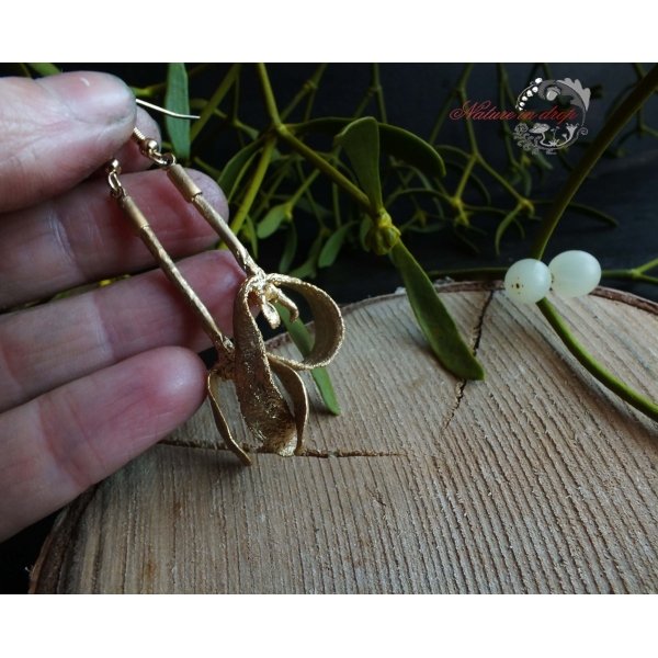 Noble mistletoe earrings in a luxurious gold robe will add to the grandeur and mystery. I worked every detail gently and carefully and dressed the real mistletoe layer by layer in copper, silver and gold.