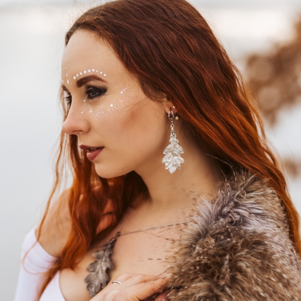 Material: linden, copper, silver-plate, rhodium-plate, amethyst, surgical steel hooks