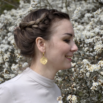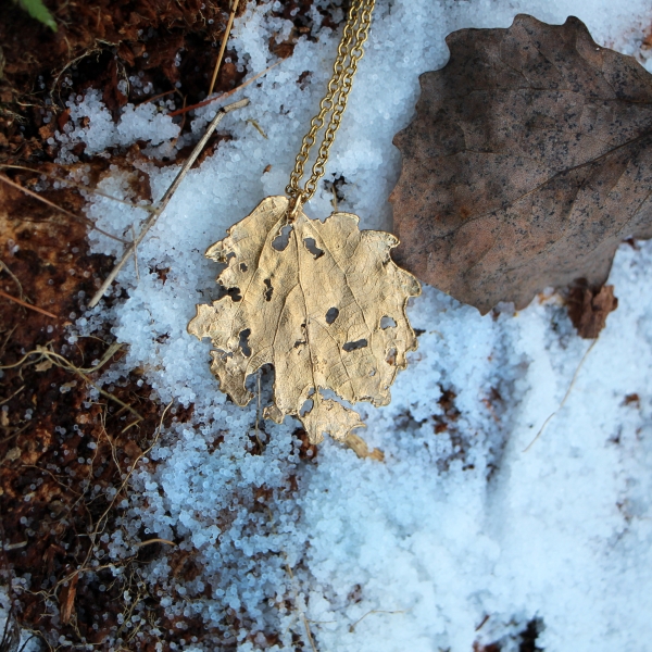 Material: poplar leaf, copper, silver-plate, gold-plate, gilded surgical steel hooks