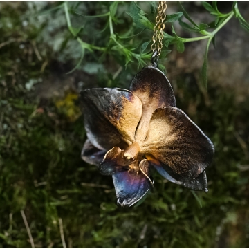 Material: flower of Orchid, copper, tin, surgical steel, silver-plated, gold-plated