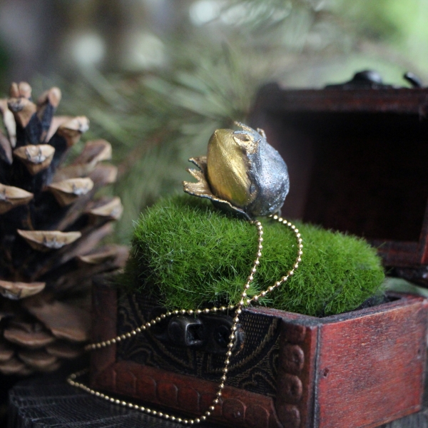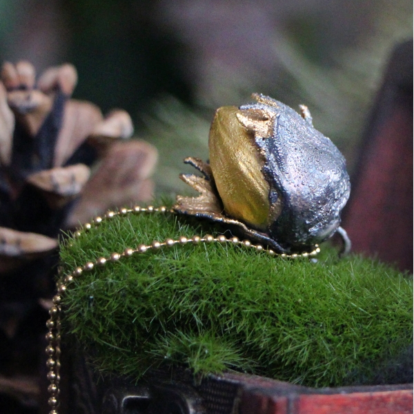 * I created and handmade this unrepeatable jewelry in my magical workshop by a unique method of Electroforming and Electroplating. I plated the real natural material with a base layer of copper, then silver-plated with a layer of pure silver and subsequently gilded with 23 carat gold.