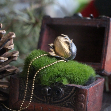This magical nut will transport you straight into a fairy tale.It si real, but thanks to the silvering and gilding, it has a magnificent garb that leaves no doubt that the wearer is royalty. Cinderella's transformation into a princess did not take place at the ball, nor in her small room, where she put on the dress from the hazelnut.This transformation happens when a woman starts to listen to her heart and discovers the princess she always was, even when she felt like the last Cinderella.Be the princess of your life, follow your heart and allow yourself to shine.