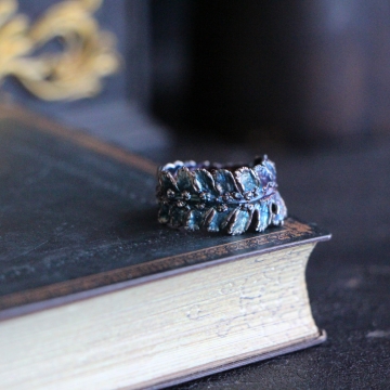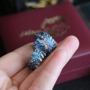 According to legends, the golden fern unlocks the treasures and gives access to the secrets of the forest. And for those, who love nature and like to reveal its secrets, these magical fern rings will be a great choice. In connection with silver and the blue and violet patina fern supports perception and deep connection between the partners as well as in the relationship with nature and life, from which everything is born.