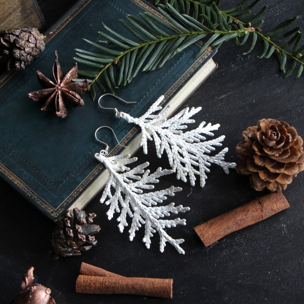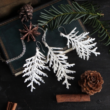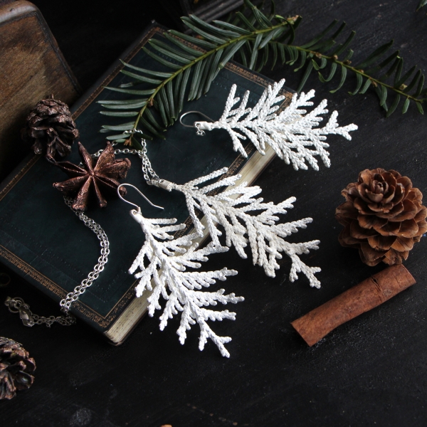 Material: thuja twigs, copper, silver-plated, antioxidation agent, surgical steel chain and hooks